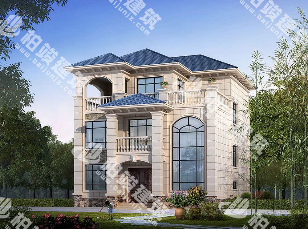 农村三层简欧风别墅设计图,外形典雅,内部7室