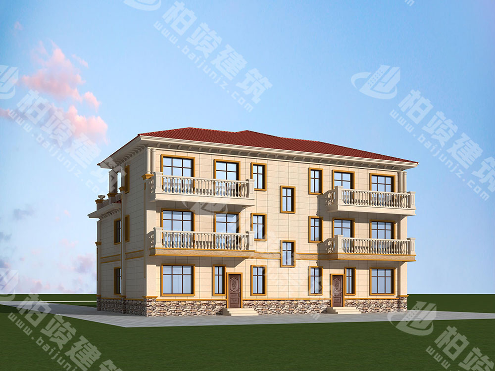农村自建房设计图,三层双拼别墅,气派简欧风格,带堂屋神龛位
