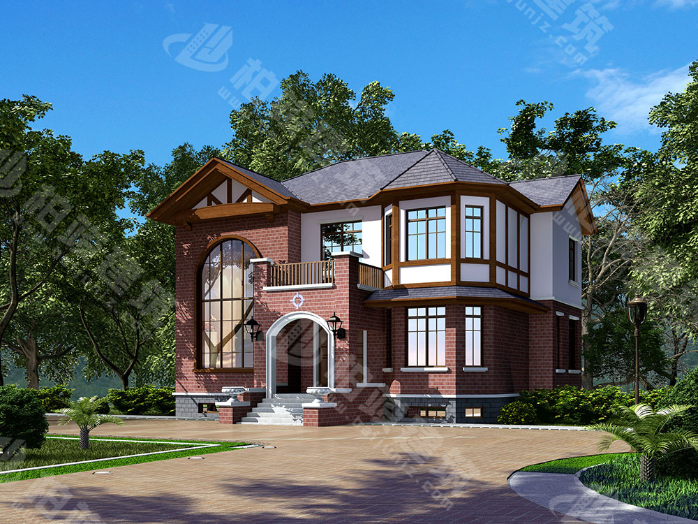 屋顶造型:方片形彩石金属瓦铺设坡形屋顶,质感粗粝,突出不拘小节的美式田园风情
